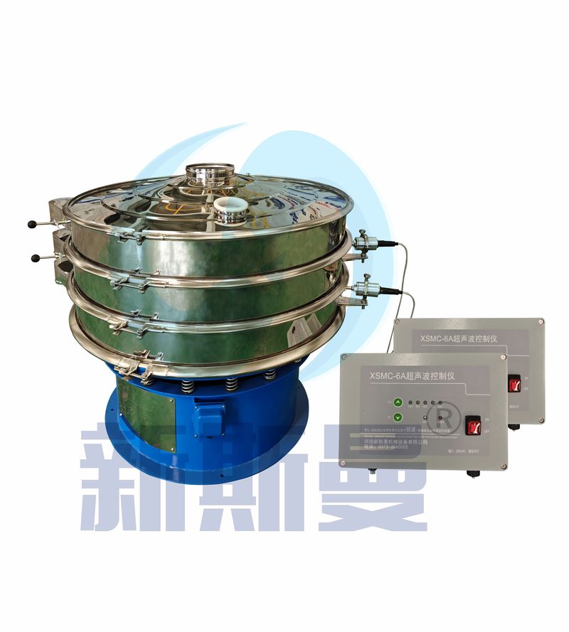 超声波振动筛是在旋振筛的基础上引入了超声波清网装置,通过将220V、50Hz或110V、60Hz电能转化为18KHz的高频电能,输入超声换能器,将其变成18KHz机械振动,从而达到高筛分和迅速清网的目的,使超微细粉筛分成为易事。该系统在传统的振动筛基础上在筛网上引入一个低振幅、高频率的超声振动波(机械波),以改善超微细粉体的筛分性能。特别适合高附加值精细粉体的用户使用。超声波筛分系统是一种简单实用、可靠的筛分系统,是当前网孔堵塞的有效的解决方法。可广泛应用于制药、冶金、化工、选矿、食品等要求精细筛分过滤的行业,筛分过滤精度高,有效解决因团聚、静电、强吸附性卡堵网孔等筛分难题,是国内筛分行业的一项重大技术突破。