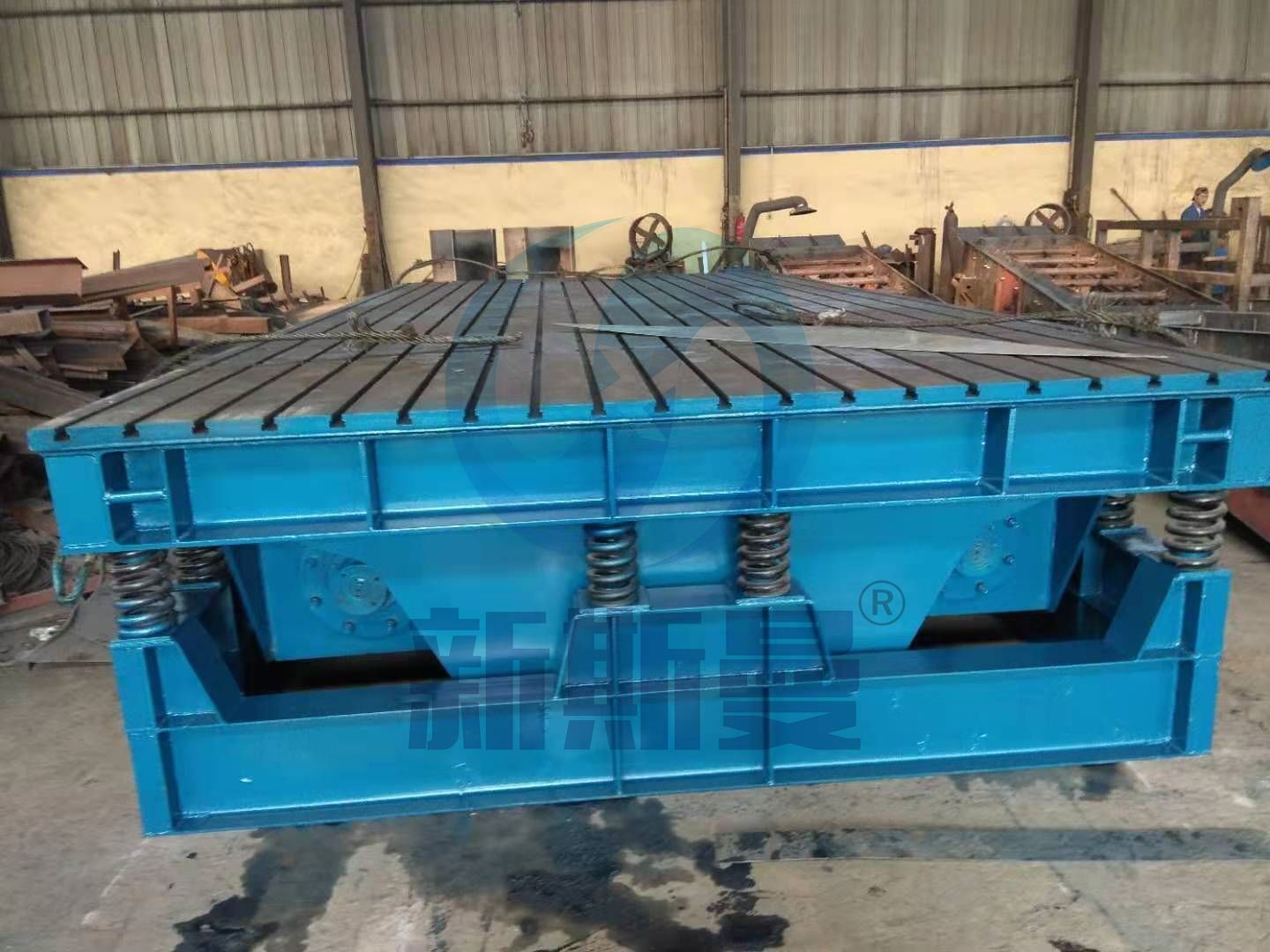 主要由台底架、振动电机和弹簧等部件组成,台面与底架均用钢板和型钢焊接而成,振动台是用振动电机加一对相同的偏心轮组成。