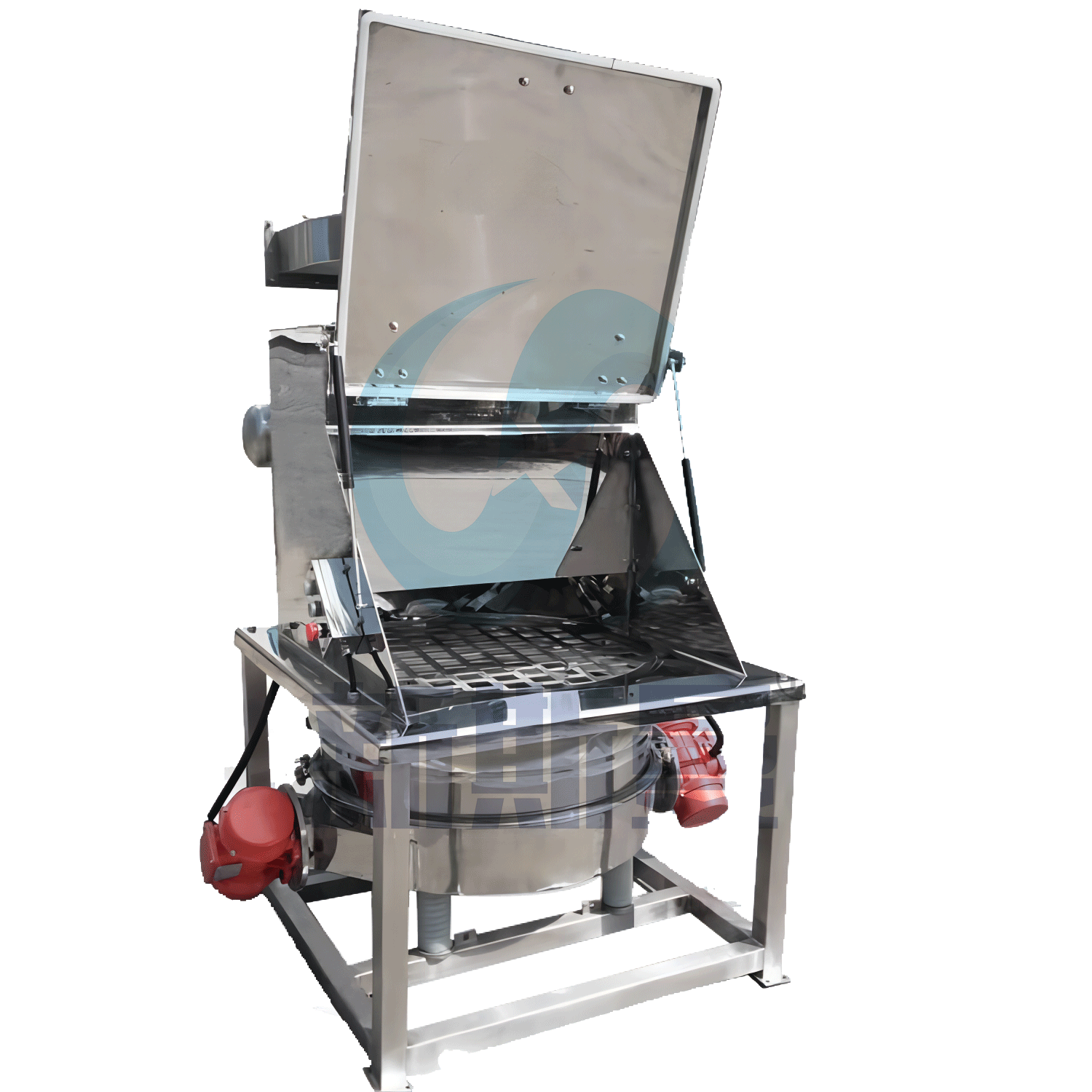 无尘投料站由人工倾卸箱,反压供料平台,格栅,下层沙坑,振动器,过滤系统,除尘系统,回吹气囊等组成。