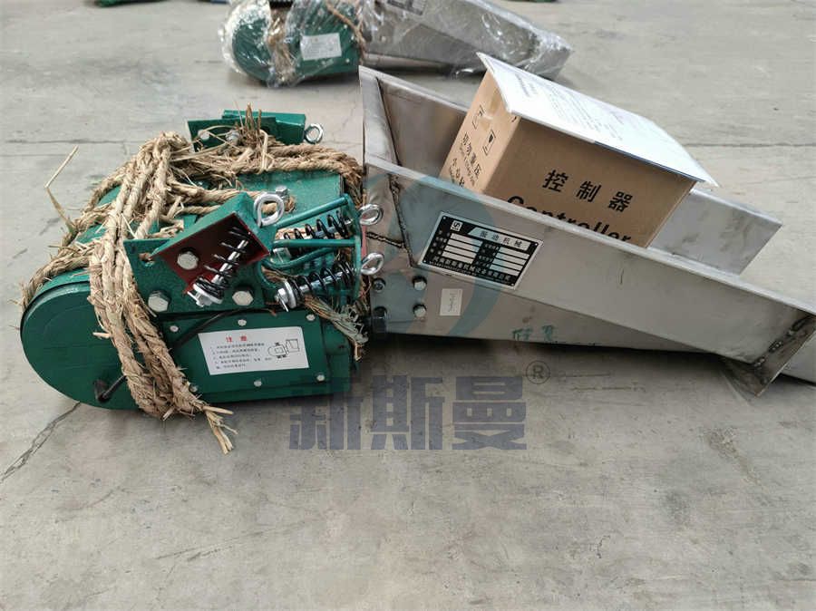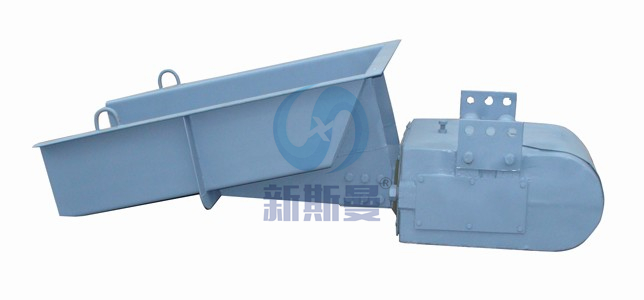 电磁振动给料机的给料过程是利用电磁振动器驱动给料槽沿倾斜方向周期往复运动来实现的,当给料机振动的加速度垂直分量大于重力加速度时,槽中的物料将被抛起,并按照抛物线的轨迹向前进行跳跃运动,抛起和下落在1/5秒内完成,料槽每振动一次槽中的物料被抛起向前跳跃一次,这样槽体以每分钟3000次的频率振动,物料相应地被抛起向前跳跃,使物料均匀连续向前移动,实现给料。